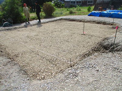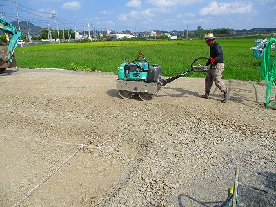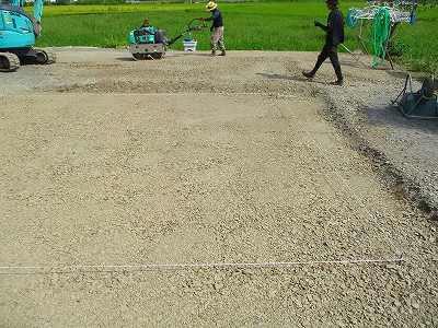 カーポート下地 砕石敷き、転圧を行いました。