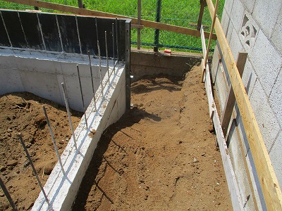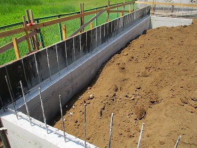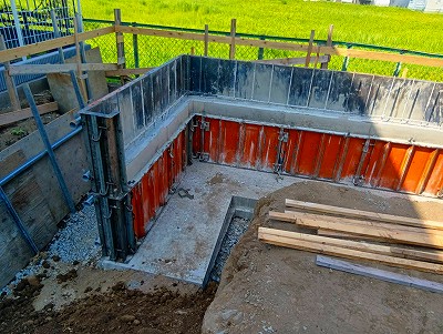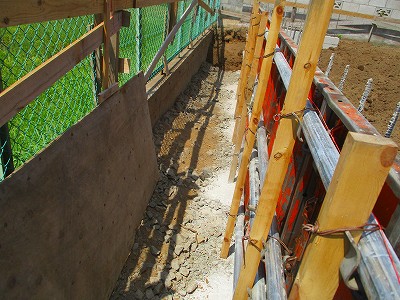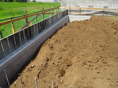 深基礎部分の型枠をばらし後、土を戻しました。